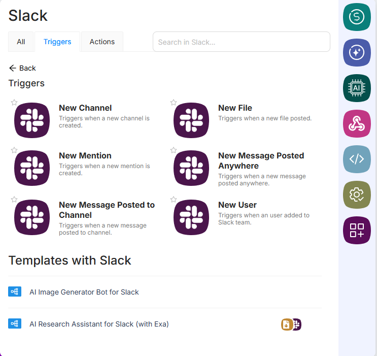 And by the way - Slack triggers do exist, they’re just located in second folder.