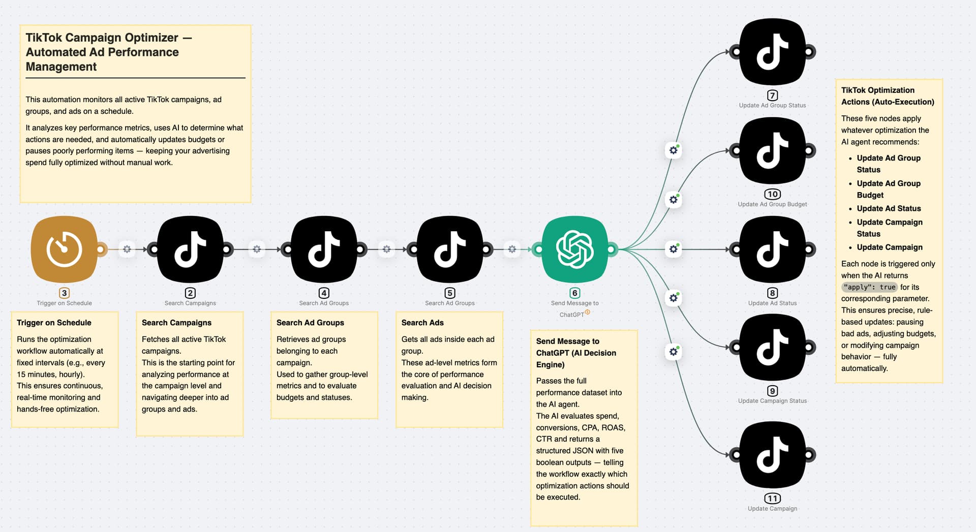 Take control of your TikTok advertising with Latenode’s new TikTok Campaign Management Node. It gives your agents the power to create, launch, monitor, and dynamically adjust TikTok ad campaigns - all inside a visual automation platform.