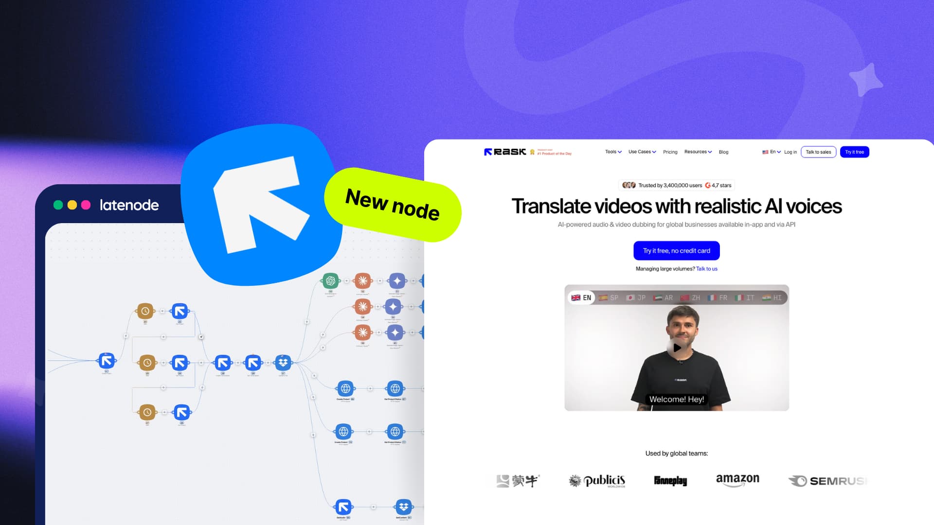Unlock the full potential of your content with the new Rask AI node in Latenode - your all-in-one solution for audio/video translation, dubbing, and global distribution at scale.