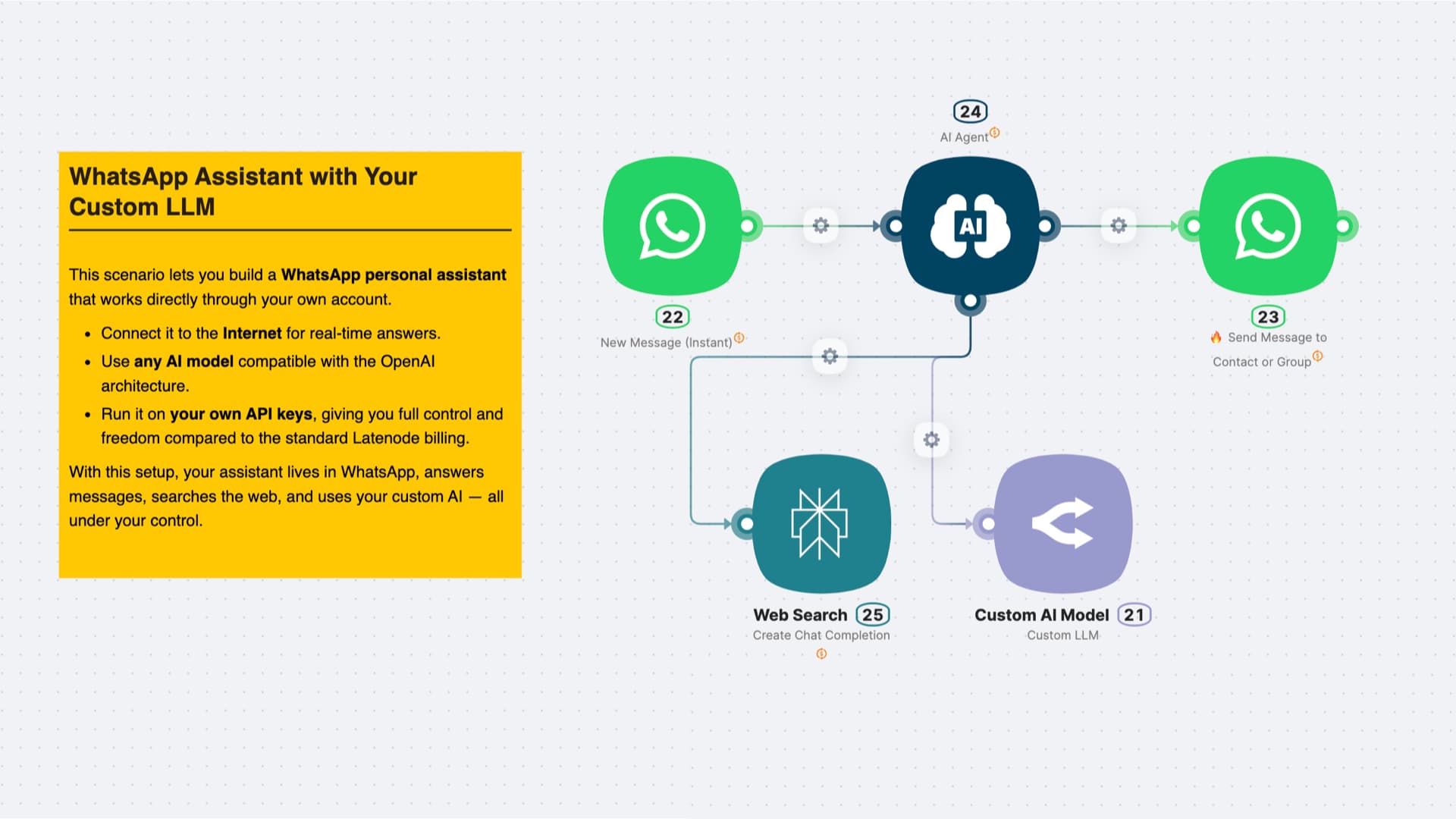 - Automation β AI Agent with Custom LLM node and Web search